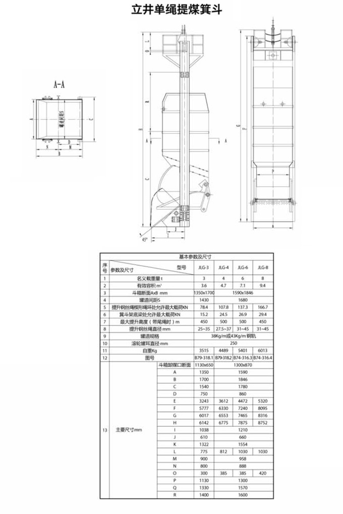 單繩箕斗基本參數及尺寸