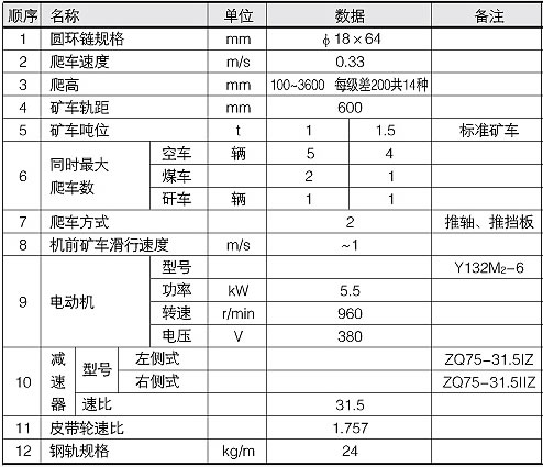 1、本設(shè)備適用于600軌距1t和1.5t標(biāo)準(zhǔn)礦車向上爬高之用,根據(jù)爬高不同共有14種型號,每種又以傳動裝置的布置方式不同分為左側(cè)式和右側(cè)式,本圖所示為爬高l.4m的右側(cè)式布置,如需裝成左側(cè)式則減速器選用ZQ50-31.5lZ,傳動機(jī)架相應(yīng)選用左側(cè)式。